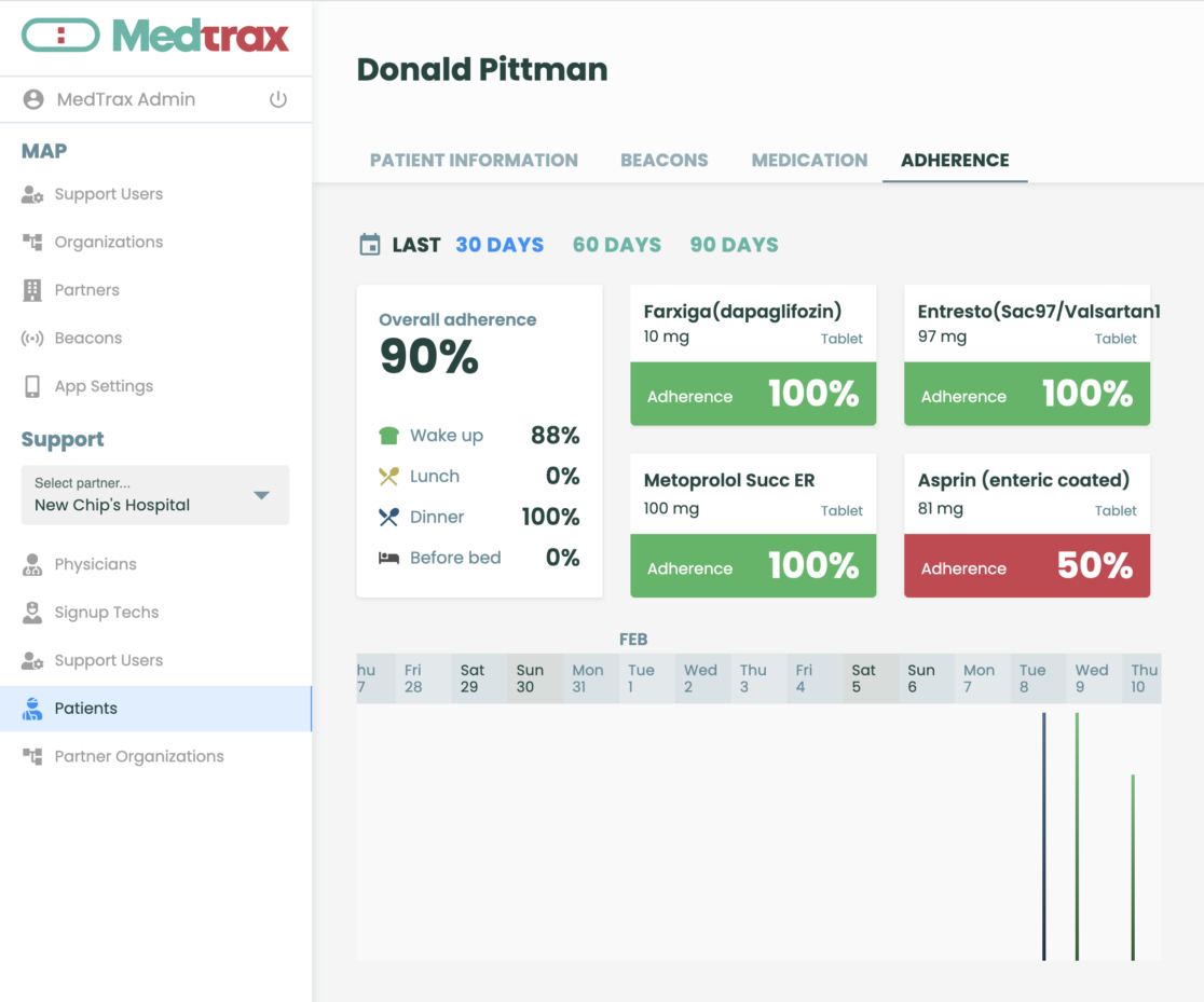 TrackMed engages patients with their medication and provides feedback to their physician to understand how they are actually taking their meds, enabling direct conversation with the patient on the causes of their non adherence.