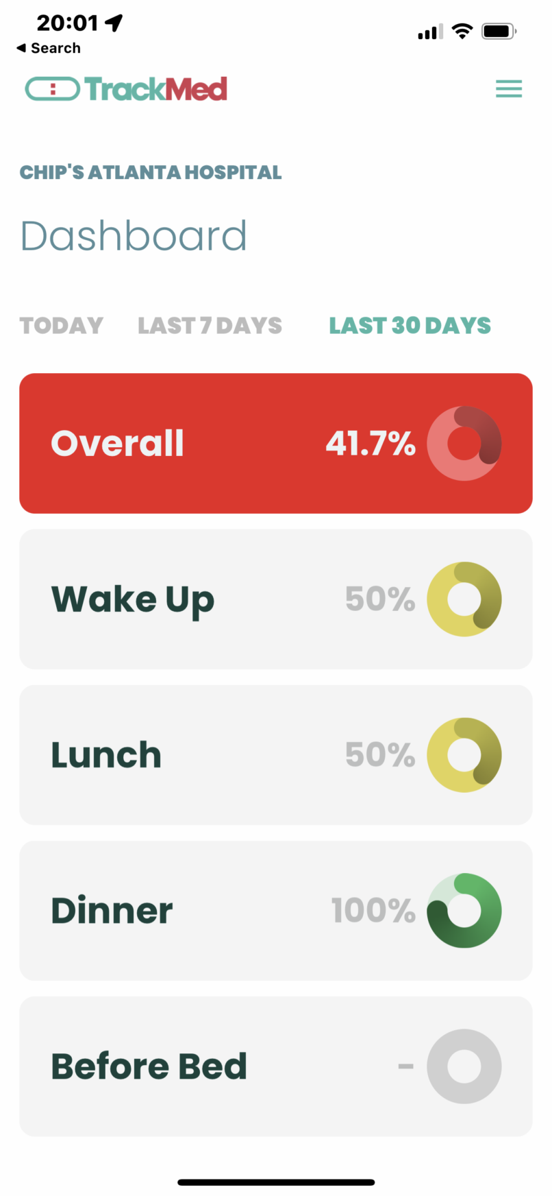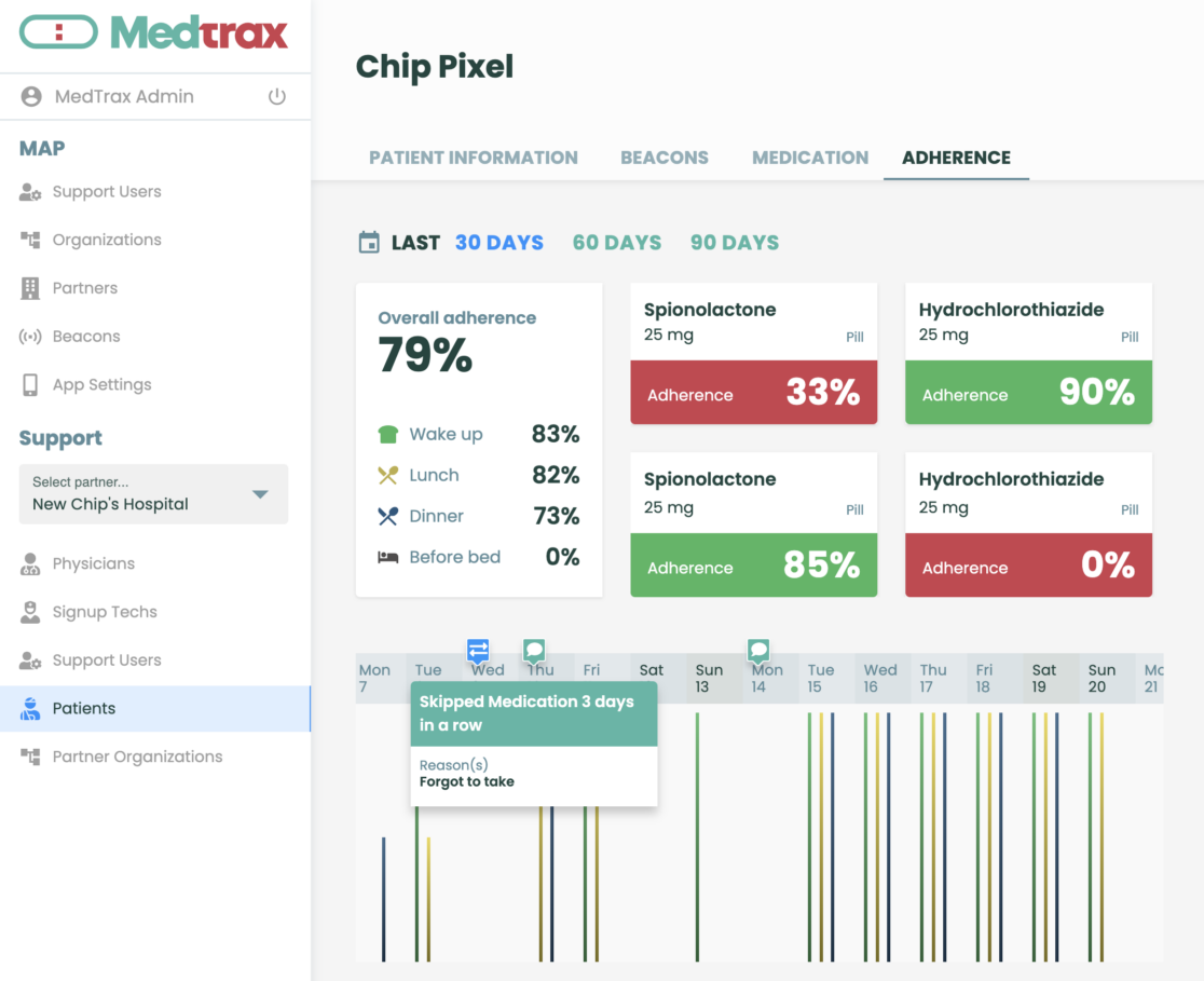 TrackMed engages patients with their medication and provides feedback to their physician to understand how they are actually taking their meds, enabling direct conversation with the patient on the causes of their non adherence.
